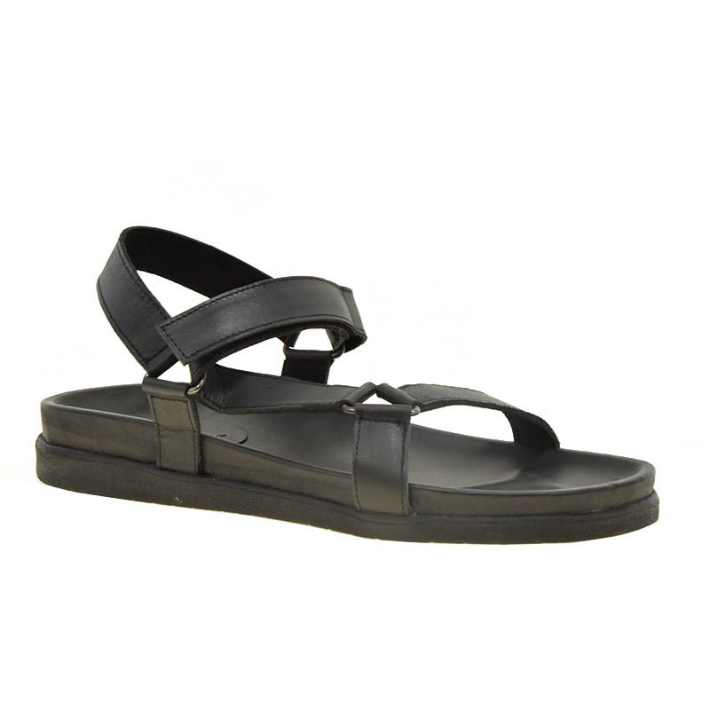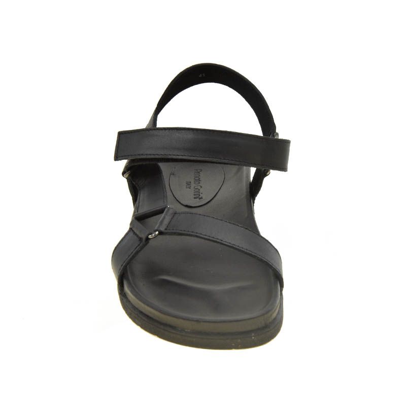 Ανδρικά δερμάτινα πέδιλα Renato Garini σε μαύρο χρώμα. Κλείσιμο με αυτοκόλλητο για ευκολία. Παπούτσια με άνετο πάτημα, μια ιδανική επιλογή που αναδεικνύει την casual πλευρά σας!