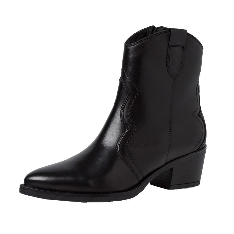 Γυναικείες μποτάκια, της εταιρείας Tamaris, κατασκευασμένες από δέρμα εξαιρετικής ποιότητας σε μαύρο χρώμα. Διαθέτουν τετράγωνο τακούνι ύψους 5,5 cm καθώς και TOUCH IT τεχνολογία, το μαλακό πέλμα που προσαρμόζεται στο φυσικό σχήμα του ποδιού. Φερμουάρ στο πλάι για μέγιστη καλύτερη εφαρμογή. Εσωτερικά επένδυση eco-warm για μέγιστη αίσθηση άνεσης, ξεκούρασης και ζεστασιάς. Μια κορυφαία επιλογή για το χειμώνα που σας κρατάει ζεστούς και up to the latest fashion την ίδια στιγμή.