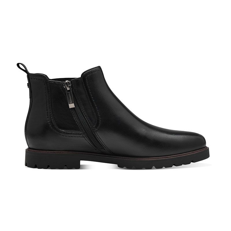 Γυναικεία μποτάκια από δέρμα εξαιρετικής ποιότητας της εταιρείας Tamaris, σε μαύρο χρώμα. Διαθέτουν τακούνι ύψους 3 cm καθώς το μαλακό πέλμα που προσαρμόζεται στο φυσικό σχήμα του ποδιού. Εσωτερικά επένδυση eco-warm για μέγιστη αίσθηση άνεσης, ξεκούρασης και ζεστασιάς. Ο τρακτερωτός πάτος αποτελεί εγγύηση για αποφυγή οποιασδήποτε ολισθηρότητας. Μια κορυφαία επιλογή για το χειμώνα που σας κρατάει ζεστούς και up to the latest fashion την ίδια στιγμή.