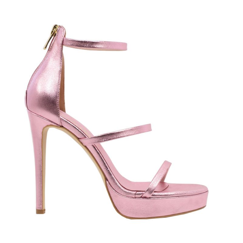 Γυναικεία πέδιλα, του οίκου Makis Fardoulis, κατασκευασμένα από δέρμα εξαιρετικής ποιότητας. Διαθέτουν τακούνι στα 12 cm με φιάπα 2 cm και θα αποτελέσουν σίγουρα μια κομψή και άνετη επιλογή για τις επίσημες εμφανίσεις μας, καθώς διαθέτει 3 λουράκια με κλειστή φτέρνα και φερμουάρ στο πίσω μέρος. Ένα παπούτσι που σίγουρα αξίζει να έχετε στην ντουλάπα σας, αφού θα απογειώσει το σύνολο σας σε κάθε περίπτωση. Σε χρώμα ροζ μεταλλικό .