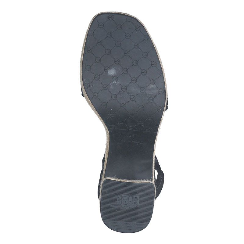 Γυναικεία πέδιλα Tamaris, κατασκευασμένα από eco suede και ύφασμα εξαιρετικής ποιότητας με τετράγωνο τακούνι ύψους 10.5 cm, cuban style που εξασφαλίζουν σταθερότητα και ανατομικό πέλμα τεχνολογίας TOUCH-IT με gel εσωτερικά για ακόμα πιο άνετη αίσθηση. Διαθέτει ακόμα την τεχνολογία ANTISLIDE για την αποφυγή ολίσθησης. Σε μαύρο χρώμα με σχοινί στο τακούνι του και λουράκι στον αστράγαλο.