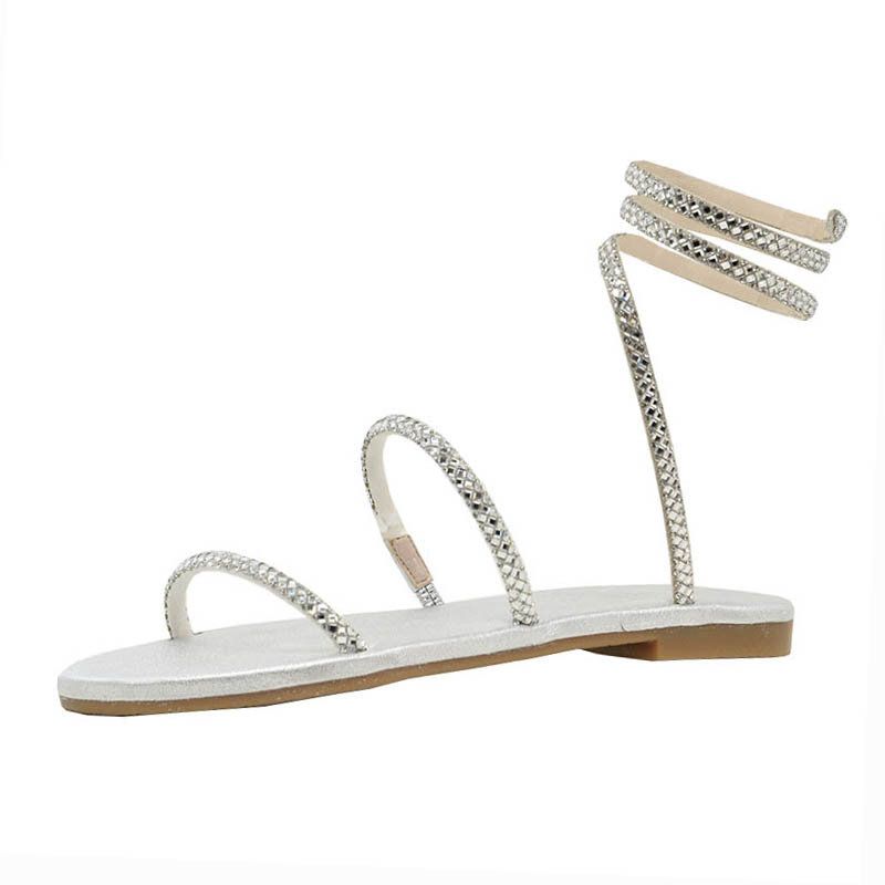 Γυναικεία σανδάλια, σε χρώμα ασημί με στρας ασημί που αγκαλιάζει το πόδι σαν βραχιόλι, του οίκου Makis Fardoulis. Διαθέτουν μοντέρνο κόψιμο βραχιολέ, καθώς και πολύ μαλακό πάτημα για να είστε άνετες σε όλες τις εμφανίσεις σας! Κατασκευασμένα από δέρμα εξαιρετικής ποιότητας. Δερμάτινος πάτος εσωτερικά και ύψος τακουνιού 1,5 cm.