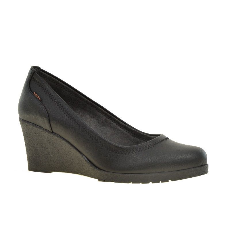 Γυναικείες γόβες με μονοκόματη σόλα ύψους 6.5 cm και φιάπα 1 cm, από eco leather σε μαύρο χρώμα της εταιρείας Ragazza , για στυλάτες και άνετες εμφανίσεις όλη την ημέρα. Διαθέτουν την τεχνολογία Dryflex η οποία απορροφά τον ιδρώτα και οποιαδήποτε δυσοσμία.