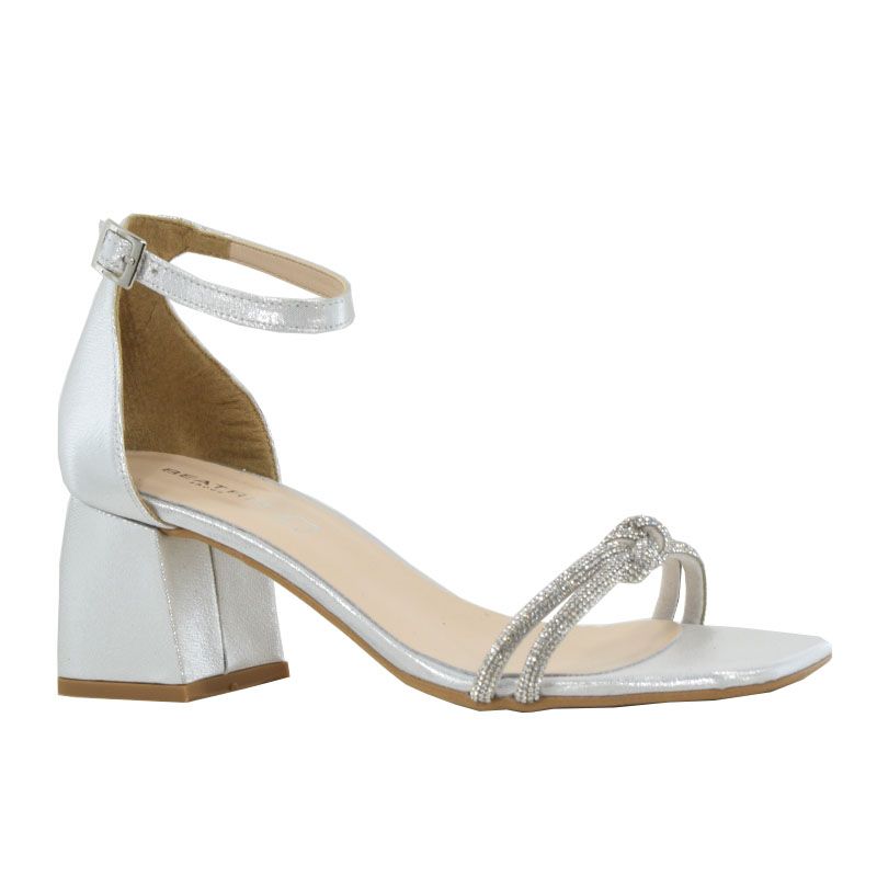 Γυναικεία πέδιλα του οίκου Piedini, με λουράκι στον αστράγαλο και κλειστή φτέρνα. Διαθέτουν μαλακό πάτημα και είναι κατασκευασμένα από ύφασμα σατέν εξαιρετικής ποιότητας. Σε ασημί χρώμα με ασημί στρας στα λουράκια για να ξεχωρίσετε σε όλες σας τις εμφανίσεις.