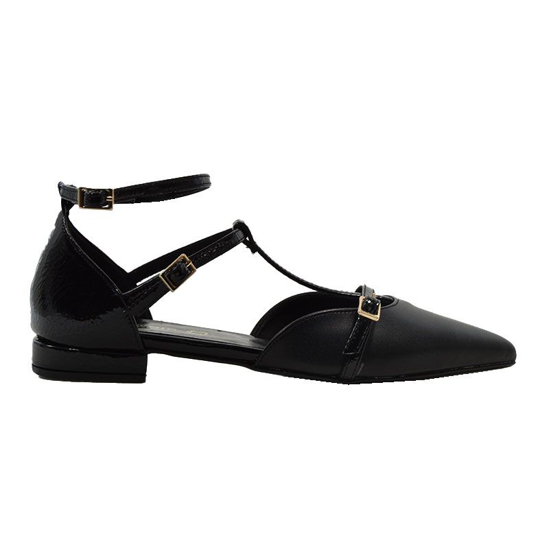 Γυναικείες μυτερές γόβες του οίκου Piedini, με λουράκι στο κουτεπιέ. Είναι κατασκευασμένες από eco leather εξαιρετικής ποιότητας σε μαύρο χρώμα. Διαθέτουν τακούνι ύψους 2,5cm και υπόσχονται άνεση σε κάθε σας βήμα καθώς εσωτερικά ο πάτος είναι κατασκευασμένος από δερμά. Επίσης το πάτημά τους είναι εξαιρετικά μαλακό. Ένα σχέδιο που θα κάνει τις εμφανίσεις σας στυλάτες και κομψές και που σίγουρα δεν πρέπει να χάσετε !