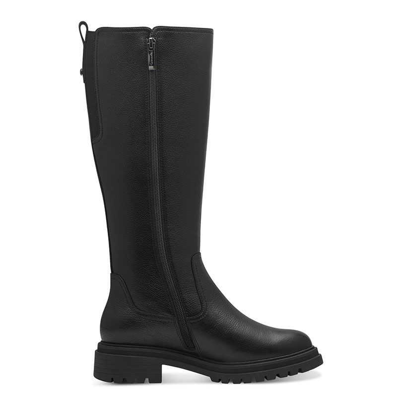 Γυναικείες μπότες Tamaris, κατασκευασμένα από δέρμα και eco leather εξαιρετικής ποιότητας σε μαύρο χρώμα. Εσωτερικά ειναι κατασκευασμένα απο ύφασμα και διαθέτουν τεχνολογία REMOVABLE FOOTBED, στην οποία ο εσωτερικός πάτος είναι αποσπώμενος για ευκολία στη χρήση και τεχνολογία TOUCH IT δίνοντας έξτρα άνεση και σταθερότητα στο βάδισμα. Ο τρακτερωτός πάτος αποτελεί εγγύηση για αποφυγή οποιασδήποτε ολισθηρότητας. Το μαλακό τους πέλμα προσαρμόζεται στο εκάστοτε σχήμα ποδιού και παρέχει μέγιστη άνεση.